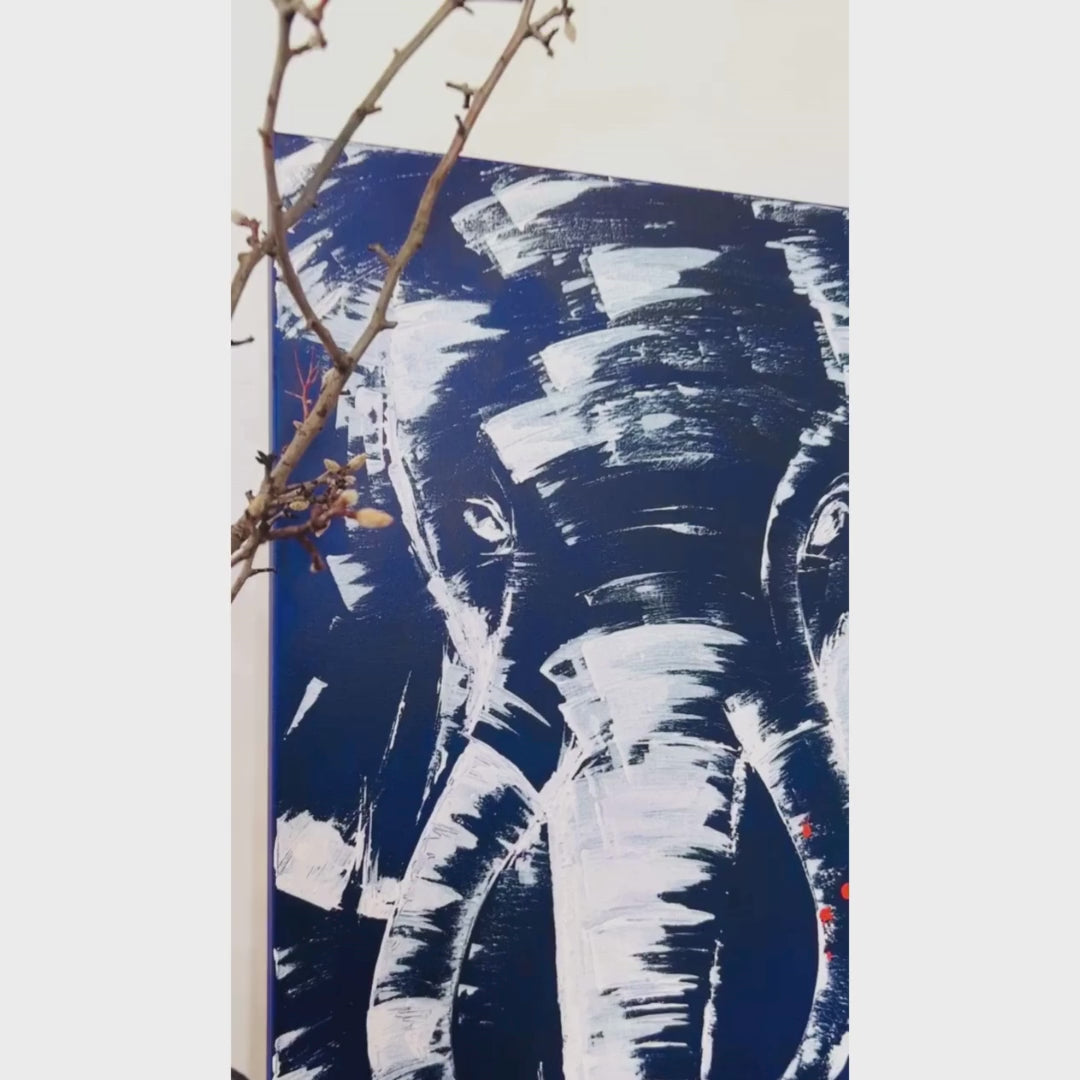 A stunning artwork that commands attention with its mighty presence against a serene blue background accented with intricate white knife work. The mighty elephant depicted in this piece exudes strength and grace, making it a striking focal point in any room. Available in framed or non-framed options.