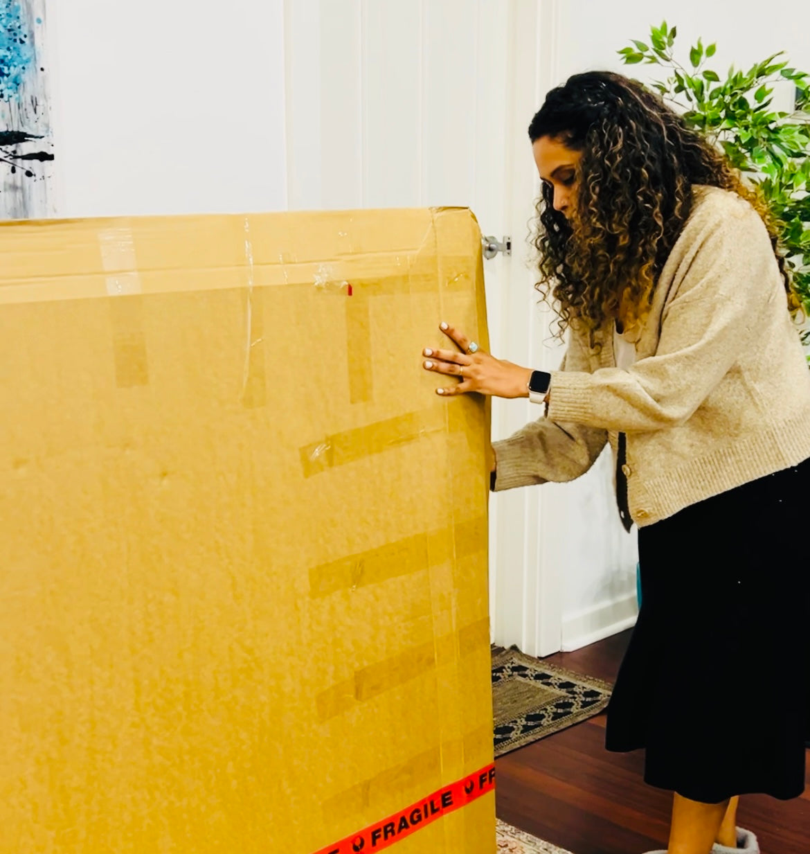 Your artwork is carefully packaged in our custom-designed packaging to ensure safe transit and minimize the risk of damage upon delivery (see video below)